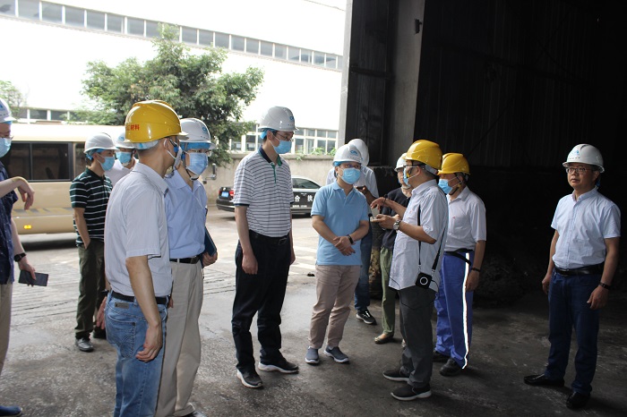 2020年6月11日上午,国家生态环境部专家来到重庆片区同兴工厂调研汽车铸造型砂的综合利用情况。长江材料集团董事长熊鹰在生产现场为专家们介绍铸造废砂再生循环利用的生产情况。重庆市固体废物管理中心主任、北碚区生态环境局副局长陪同。