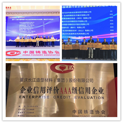 长江材料荣获第十三批中国铸造行业信用评价AAA信用企业