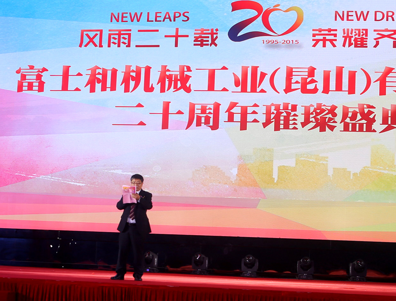 2015年12月20日,公司董事长熊鹰参加富士和机械(昆山)有限公司二十周年庆典,并致祝贺词。