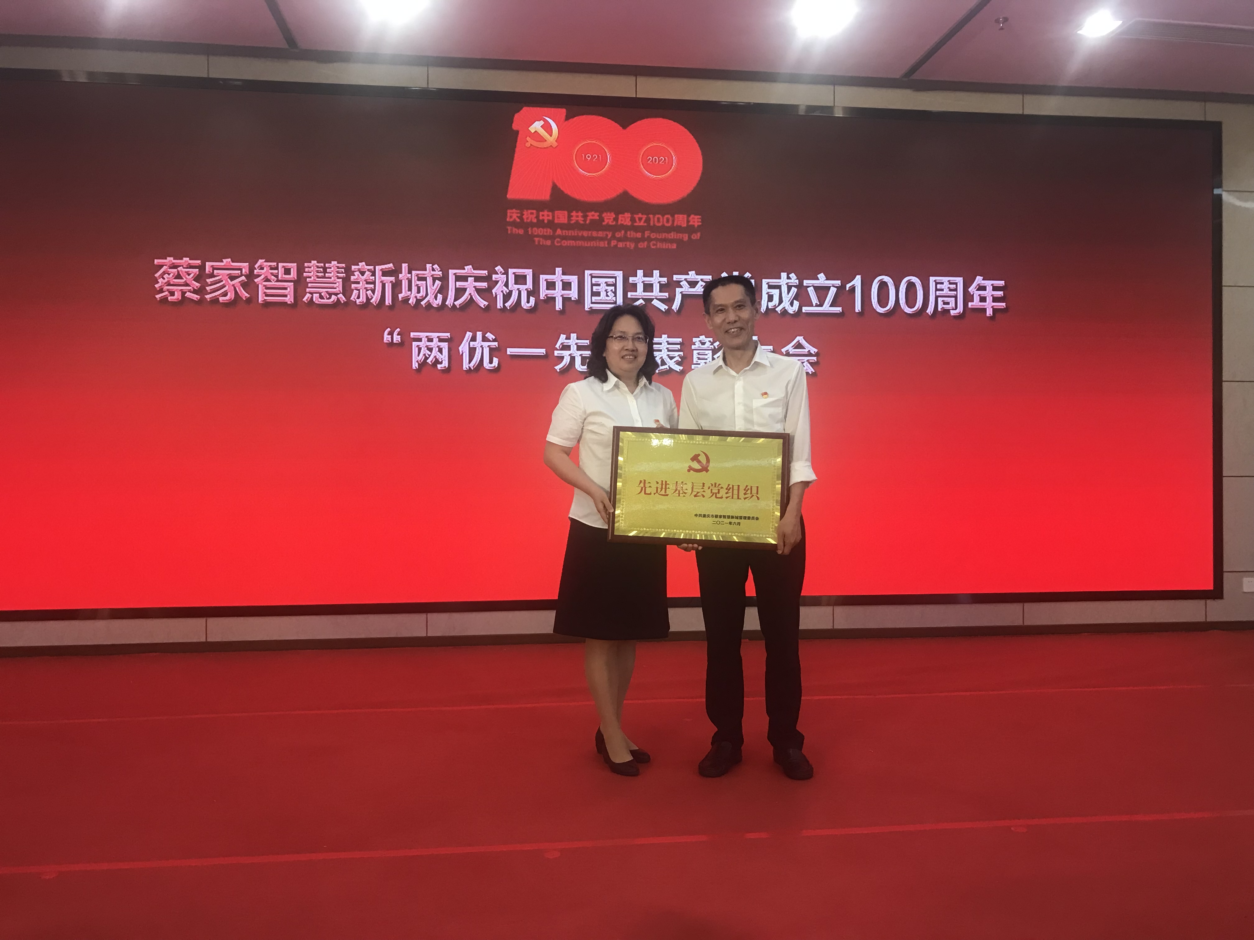 在建党100周年之际,重庆长江党支部荣获北碚蔡家智慧新城“先进基层党组织”,支部书记杨光梅荣获“优秀党务工作者”称号。